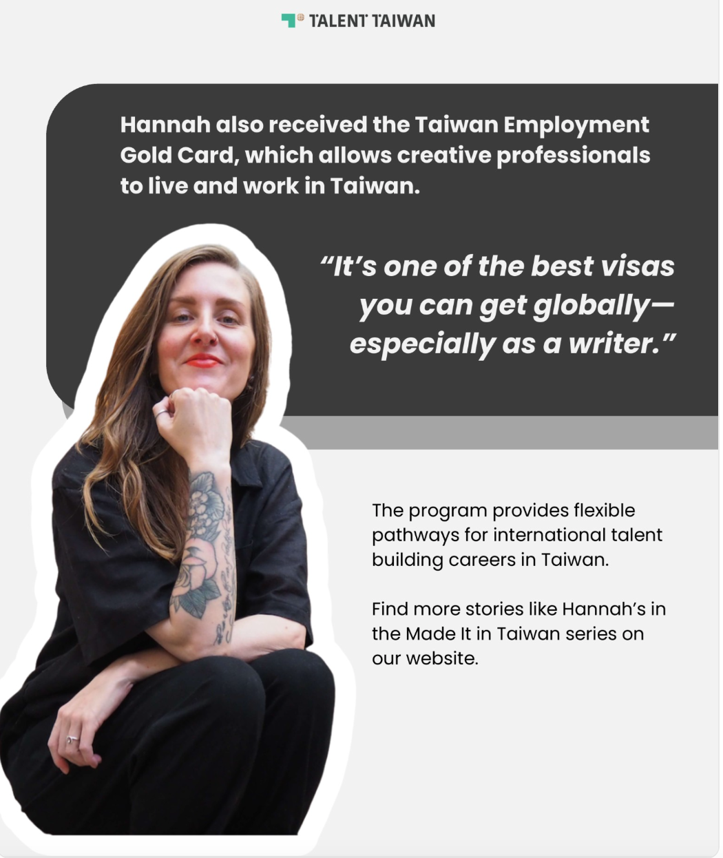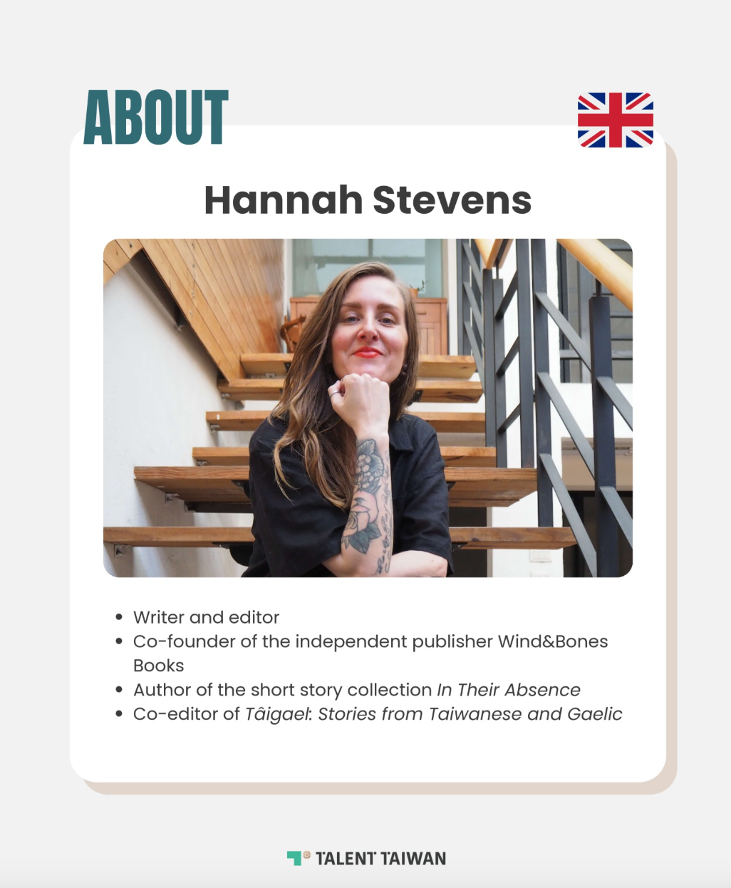 “Hannah Stevens transformed Taiwan from a brief stop into a long-term creative sanctuary. As the co-founder of Wind&Bones, she leverages the Employment Gold Card to champion diverse voices and build a sustainable career within Taiwan’s resonant literary landscape. Her journey highlights how Taiwan empowers international talent to turn creative passion into a lasting home”