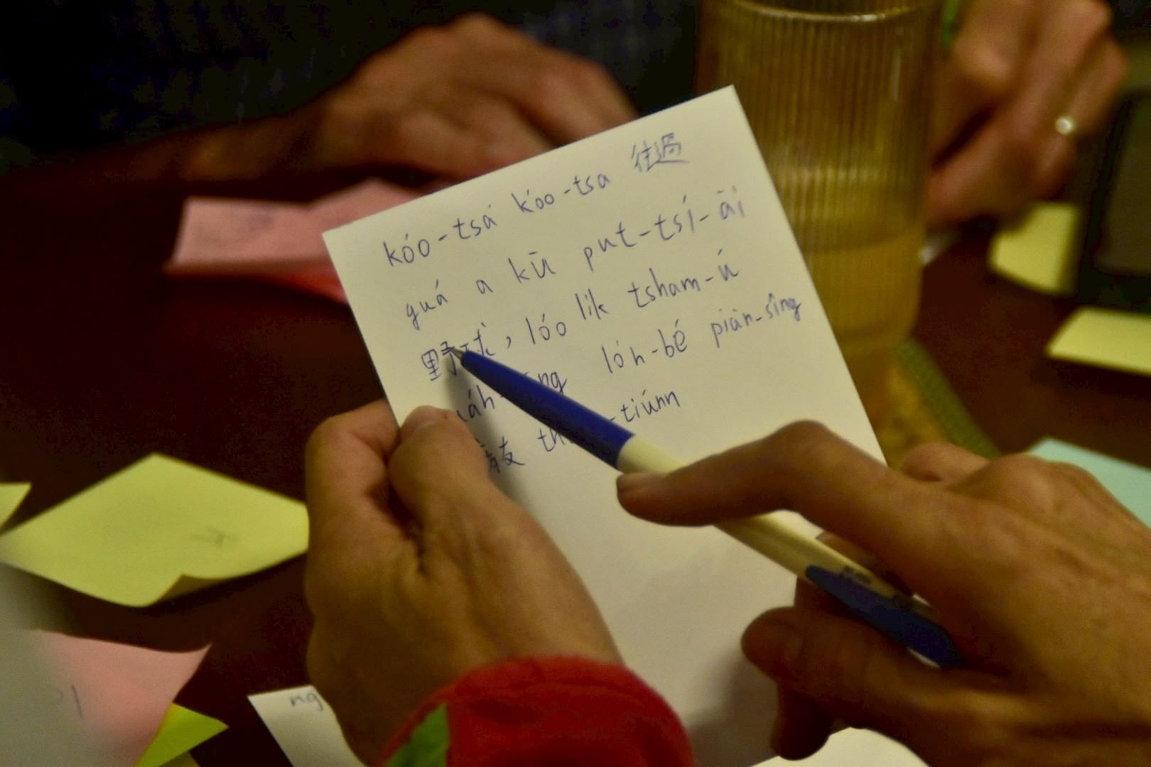 We presented the workshop mainly in Taiwanese—a language Will is hard at work learning. The group was a mixture of Taiwanese language old-hands, and new learners. At Wind&Bones, we have years of experience of working across different languages. We believe strongly in the way that literary creativity can cut across language and cultures, in often surprising ways. And one of the delights of this workshop is that by the end of the hour and a half, we had some participants who were entirely new to the language writing their first full stories in Taiwanese.